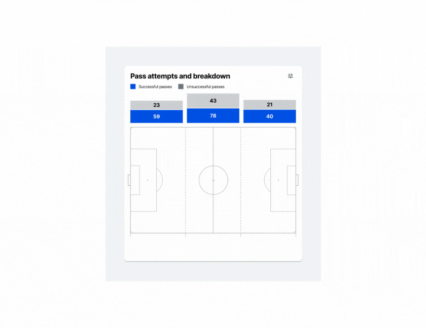 Access essential game events, game stats, and player actions, together with interactive sport-specific visualizations, to to understand the data shown in the context of the sport.
