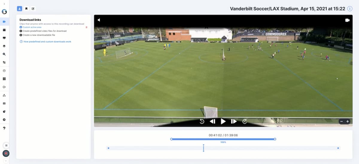 If you’re a Spiideo Perform PRO PLUS subscriber, you can now access the Custom Area AutoFollow feature by navigating to a recording in your Spiideo Perform dashboard. Just hit the ‘Download links’ button at the top of the screen and click ‘Create a new downloadable file’. Set the view to ‘Custom area’, click on the area icon, and then drag your mouse across the area of the field that you want AutoFollow to focus on. You can also specify whether to use the entire recording or select a time range to capture.